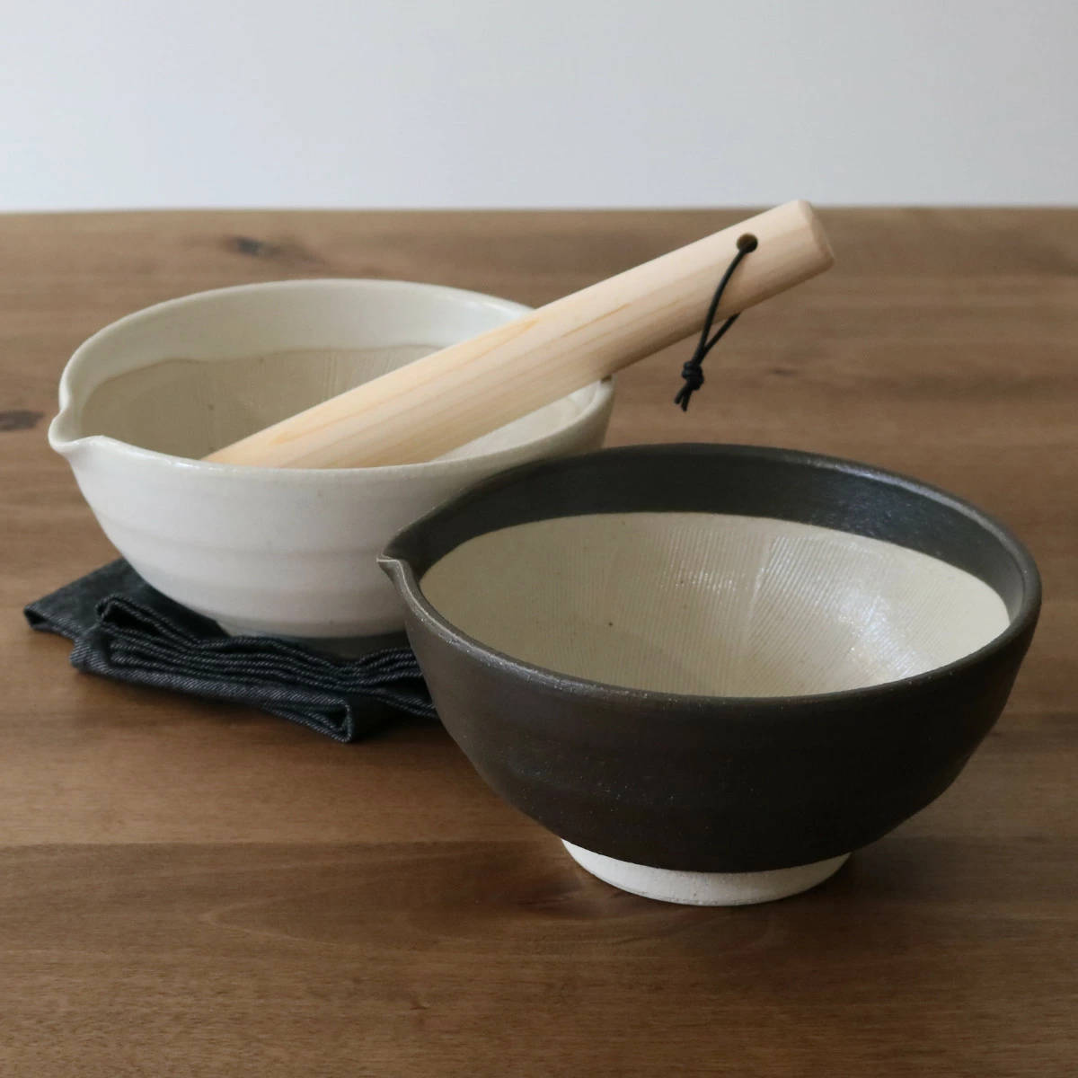 片口すり鉢は、12cm・16cm・19cm・丸10cmの4サイズございます。別売ですり鉢と相性の良いすりこぎがございます。片口すり鉢に合わせて、お好みのサイズをお選びください。