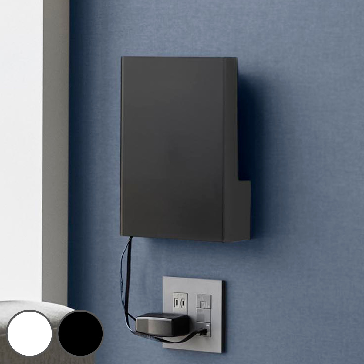 インテリアに馴染むシンプルなデザインのルーター収納です。置き場所に困るルーターとケーブルを壁面に隠してすっきり収納できます。