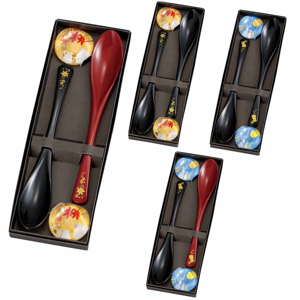 和柄のスプーンとスプーンレストの2点セットスプーンレストの絵柄に因んだ模様がスプーンの柄の部分に描かれています。スプーンは口当たり優しく和スイーツのおもてなしにピッタリです。ギフトBOX入りで結婚祝いなどの贈り物にも最適です。安心の日本製です。