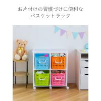 4つのカラフルなバスケットが入った2段のバスケットラックは、お子様のお片付け習慣をサポートします。色で分けて収納するものを決められるので、小さなお子様でも覚えやすく、ゲーム感覚で楽しくお片付けの習慣が身に付きます。フタのないシンプルな形状のバスケットで、お子様が自分でおもちゃを片付けやすくなっています。