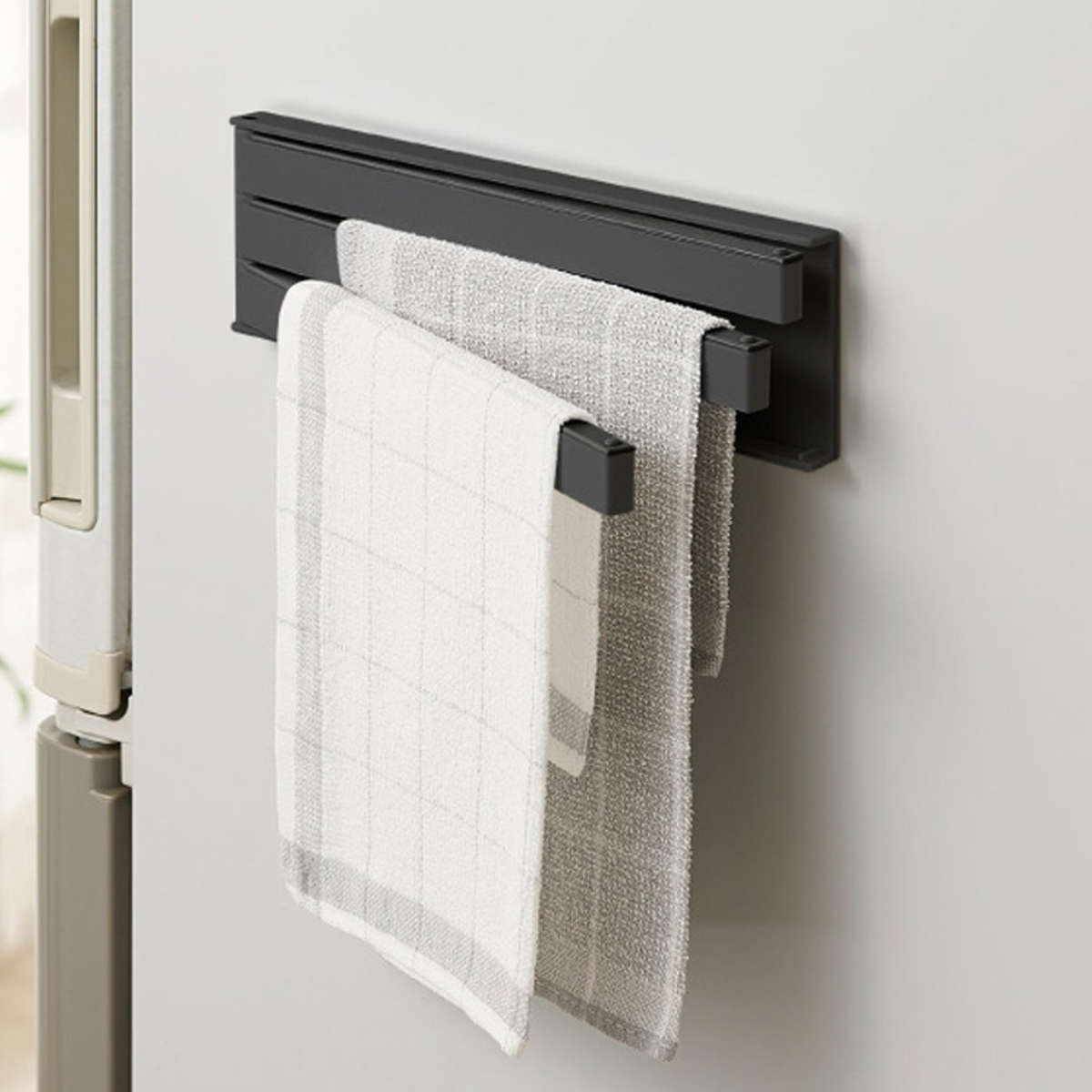 マグネットでふきんやタオルをスッキリ収納●冷蔵庫の横やスチール面など、マグネットが貼り付くところなら簡単に取り付けられます。