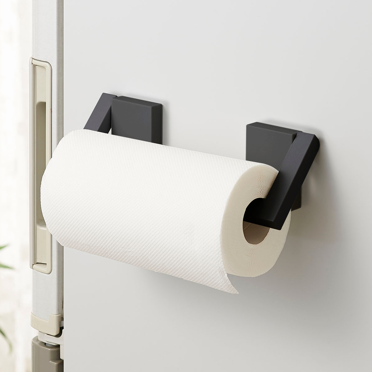 マグネットで簡単設置、フラットになるキッチンペーパーホルダー
