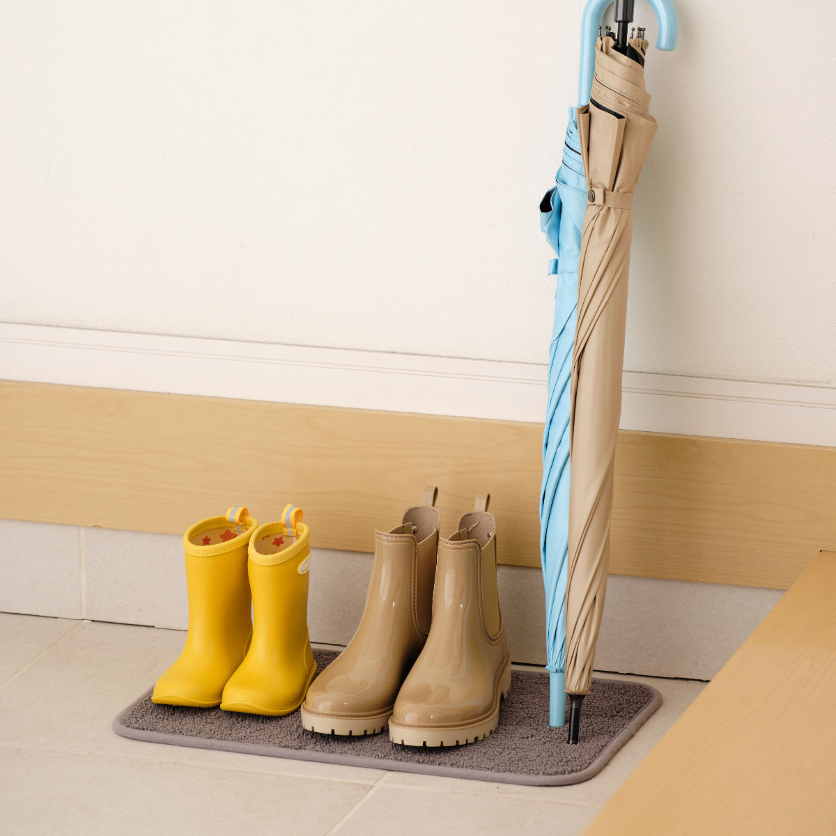 雨の日も玄関濡れずに快適に●靴底の水分や汚れをキャッチする屋内用吸水玄関マットです。
