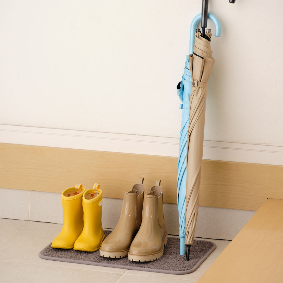 濡れた傘の一時置きに濡れた傘やレインシューズ、スーツケースなどをちょっと置くのにも便利です。濡れたままのものを置いておけるので、床が汚れず、乾くまで待っておくことができます。