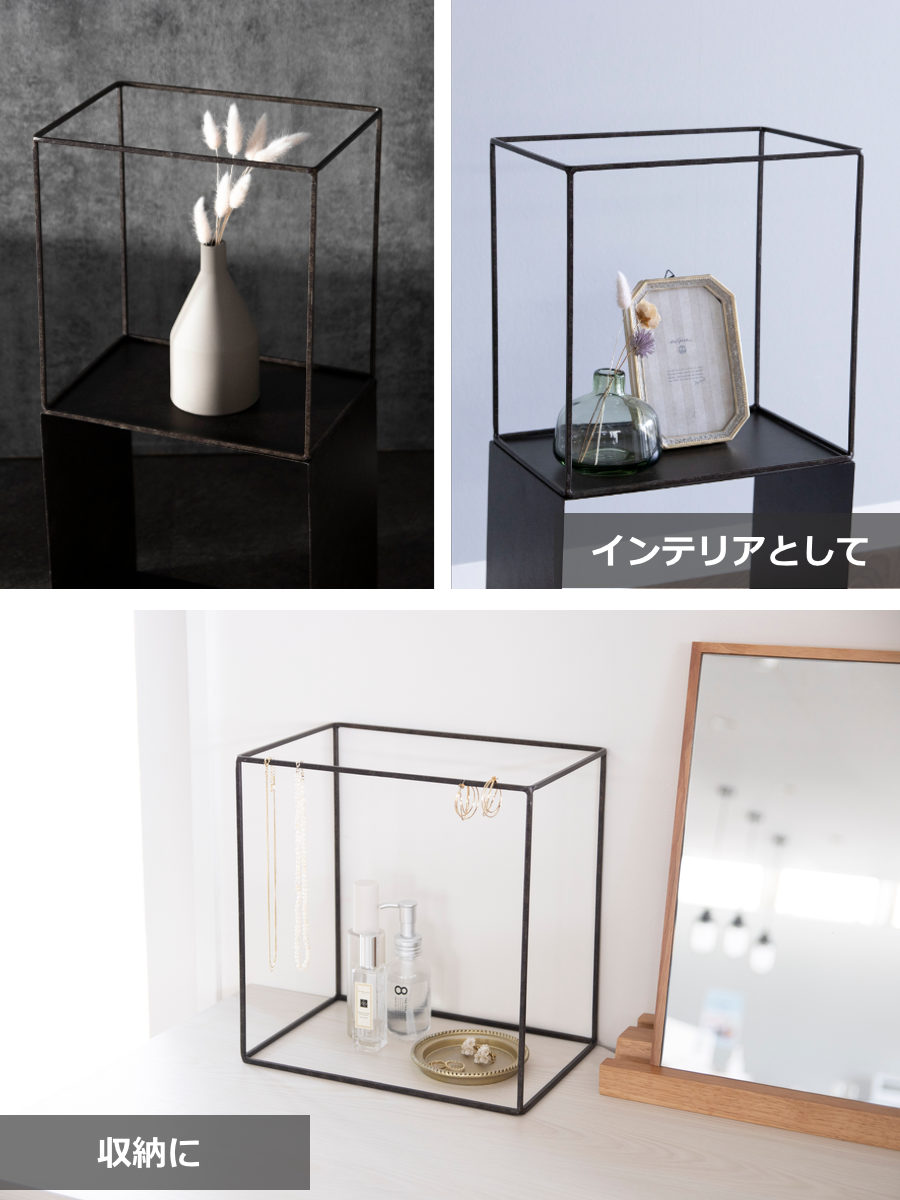 花瓶をひとつ置くだけでも立体感が生まれ、空間にメリハリが生まれます。フレームを利用して、アクセサリーの引っ掛け収納としても活躍します。インテリアに調和しながら、暮らしに機能をプラスする一品です。