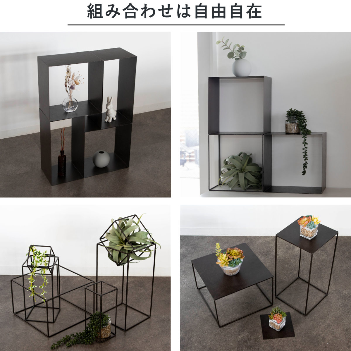縦横の向きやサイズ違いも自在に組み合わせられ、空間に合わせたアレンジが楽しめます。