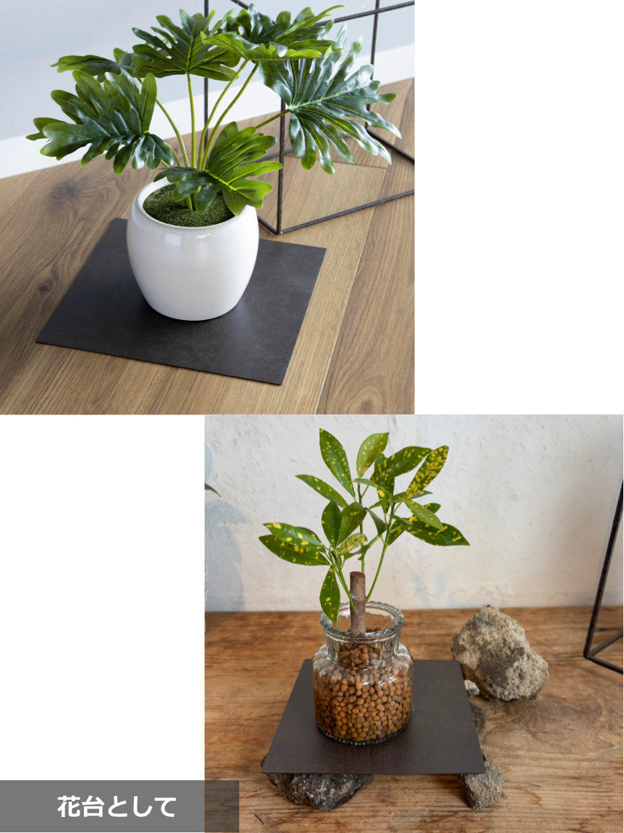 プレートを床に直置きしそこへ花瓶をひとつ置くだけでも、空間にメリハリが生まれます。インテリアに調和しながら、暮らしに機能をプラスする一品です。