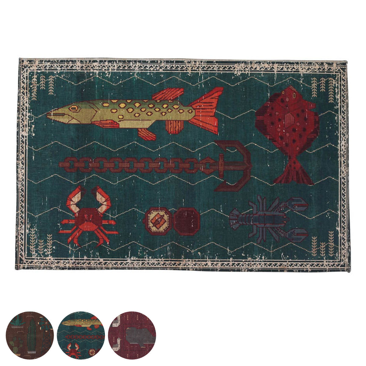 程よいゆるさがクセになるマット 50×80cmDULTONのブランド独自の世界観をモチーフにデザインされたマットです。くすんだ色合いに、かすれた柄・模様がビンテージの風合いを感じさせます。 落ち着いた色合いなので、空間に取り入れやすく、個性的な柄がアクセントになります。