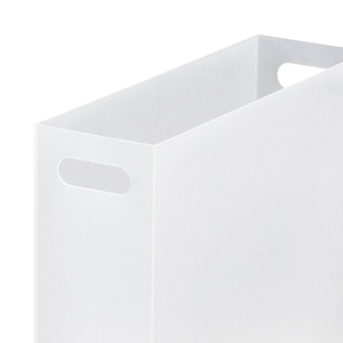 A4サイズの書類やファイルをスマートに収納できる、スリムタイプのストレーショナリーボックスです。幅わずか10cmのスリム設計で、限られたスペースでもしっかり収納できるから、デスク周りや棚のすき間にもぴったりです。