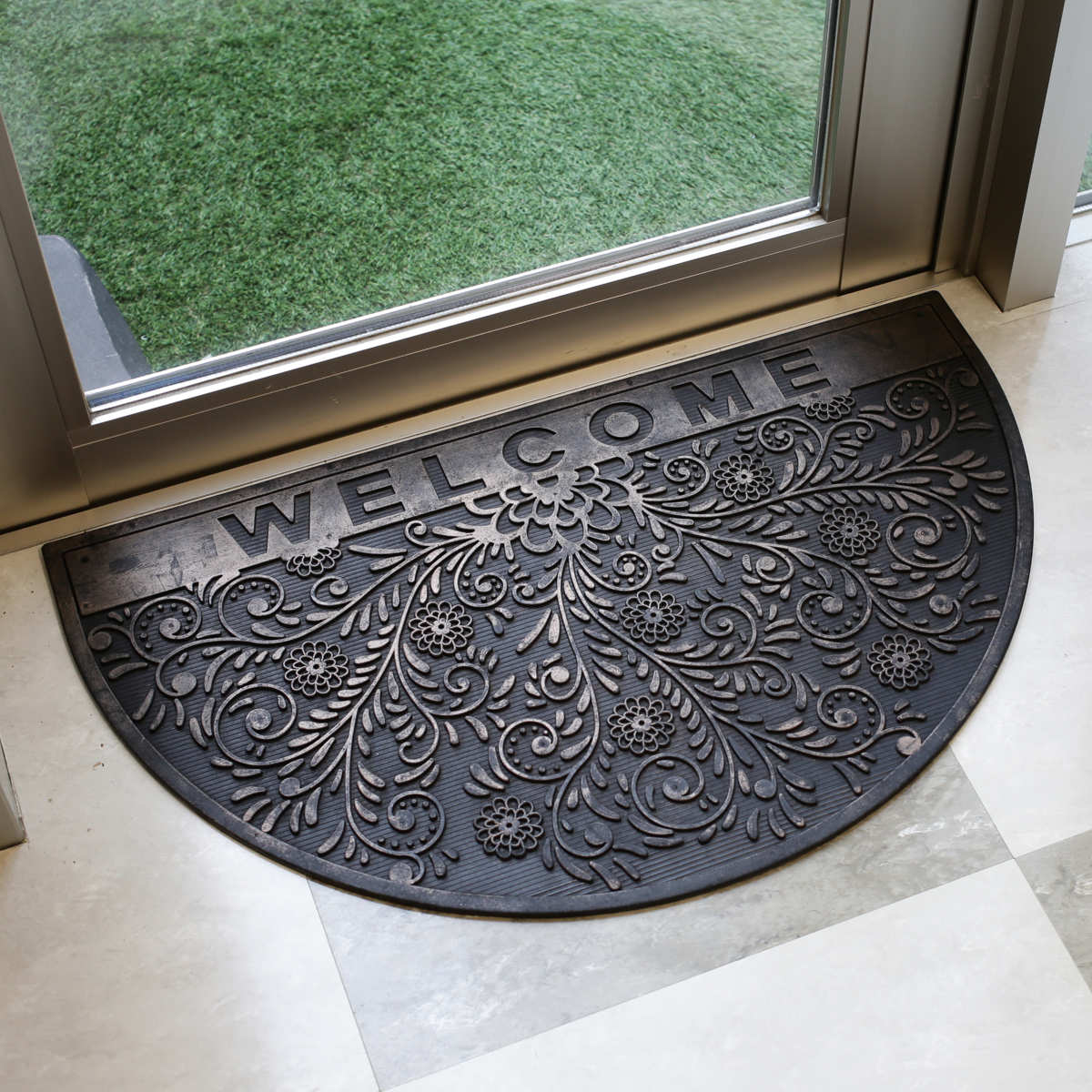 玄関先がやわらかい印象になる半円形半円形の玄関マットは、ドアを開けたときの前のスペースに自然と収まり、玄関先をやわらかい印象にしてくれます。置くだけで、オーソドックスな長方形のマットとは一味違う印象を与えてくれます。