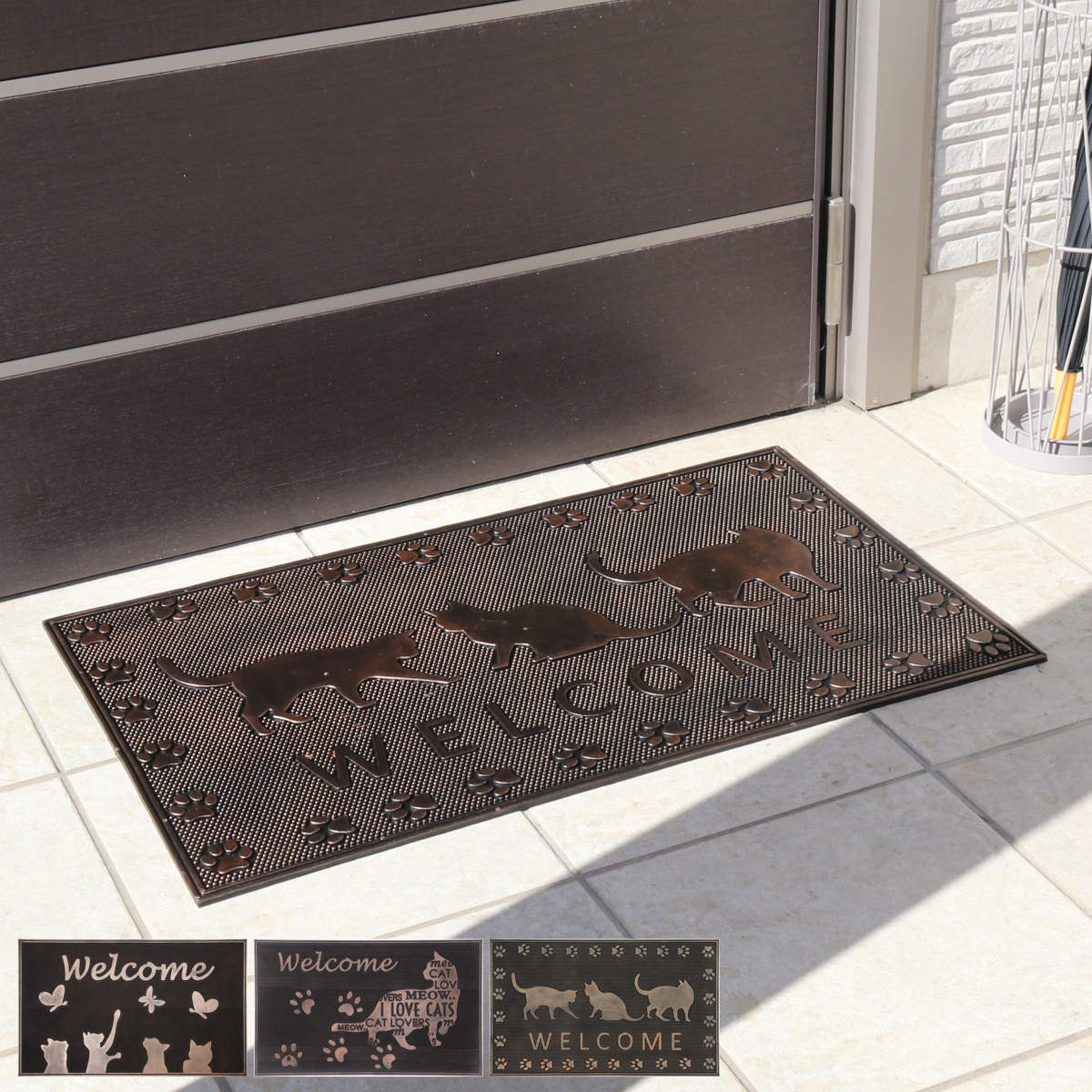 玄関マット 屋外 ラバーマット 猫 45×75 ( 泥落とし 洗える 水洗い 弾力 マット 滑り止め 雨 ラバー ゴム 幅75cm ネコ )