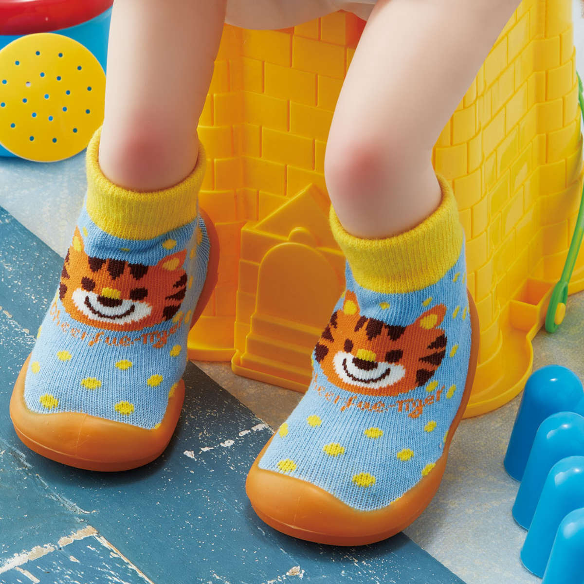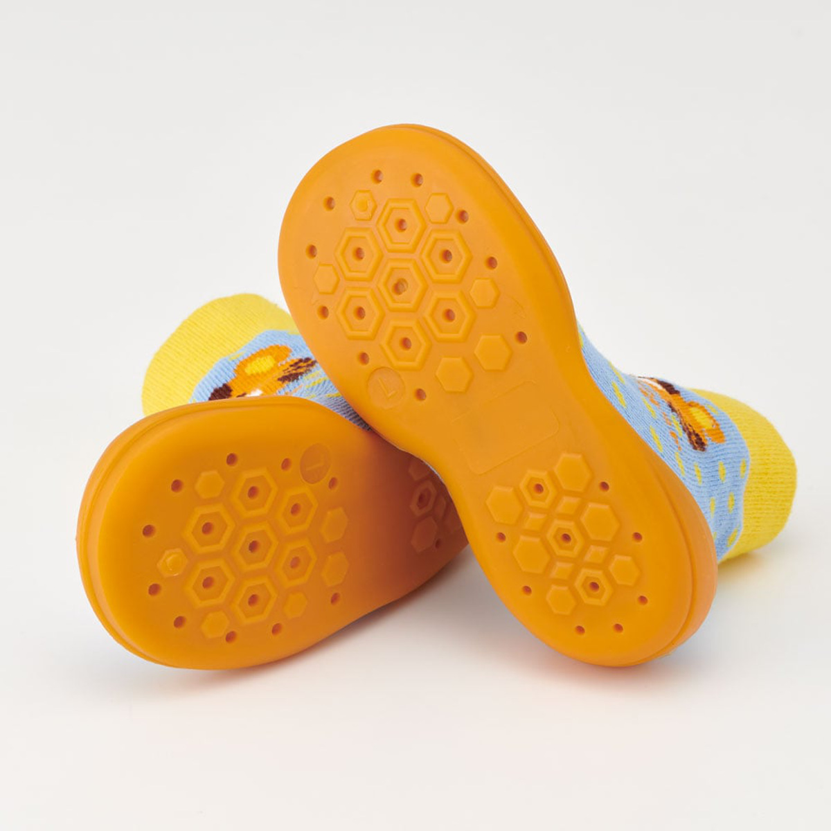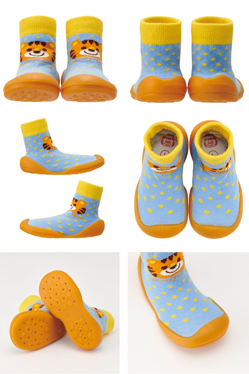 ●シューズの上部は靴下のように柔らかく伸縮性があり、赤ちゃんの足に優しくフィットします。