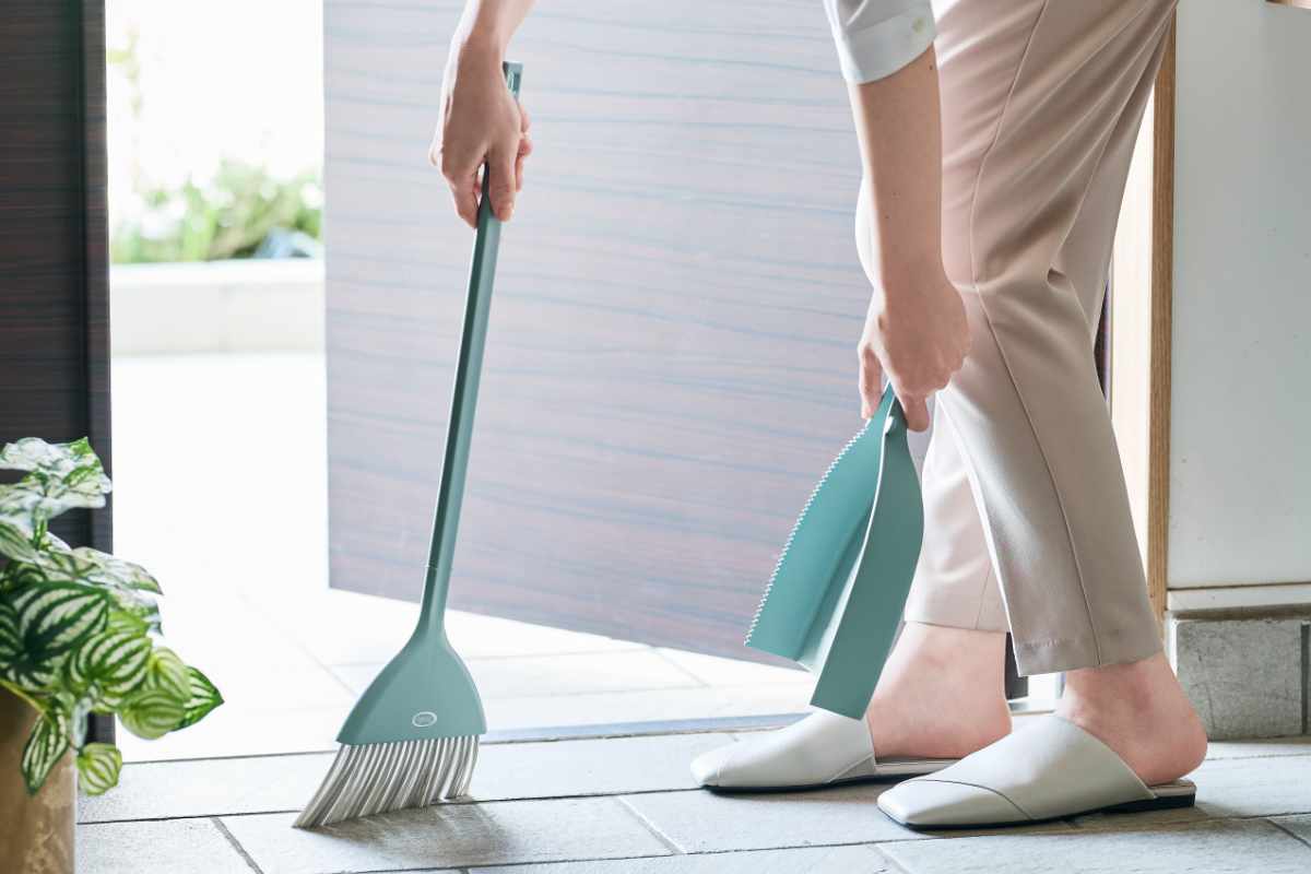 玄関やベランダでは落ち葉や砂ぼこりをサッと掃けます。キッチンやリビングでは髪の毛やホコリを取るときに便利です。