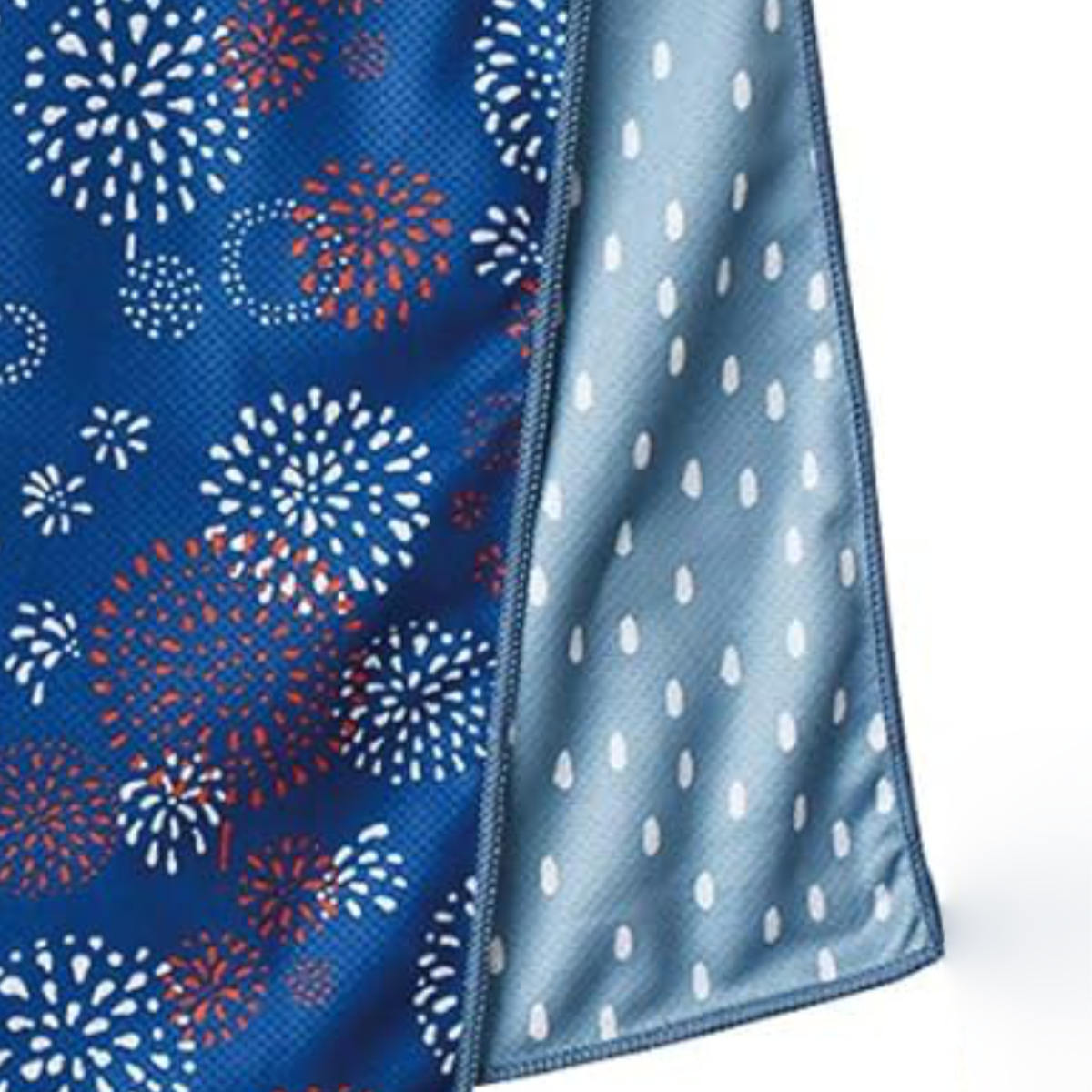 リバーシブルで楽しいデザイン夏らしい柄を楽しめる表面、ひっくり返すと雰囲気の違うドット柄デザインなので気分に合わせて使用できます。