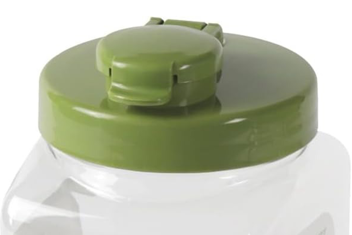 別の容器やグラスにも注ぎやすいワンタッチ式注ぎ口付きです。ガス抜き弁があるため、発酵性のあるものも保存でき、閉じておけばフルーツやお酒の風味も守れます。
