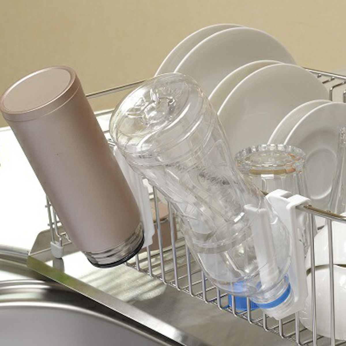 ボトル用水切り フック2個組水切りかごに取り付けやすい便利なフック2個入りです。倒れやすいボトルやコップ洗いブラシなどを効率よく乾かす事ができます。