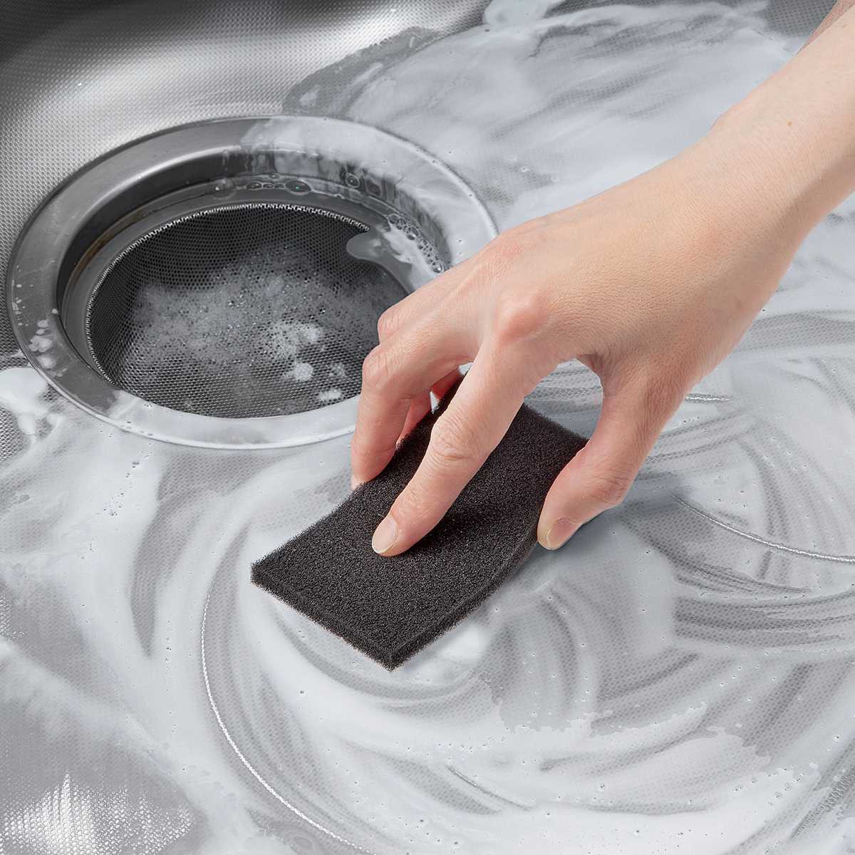 ●シンク磨きクレンザーと一緒に使って、しつこい汚れをしっかり落とせるスポンジです。