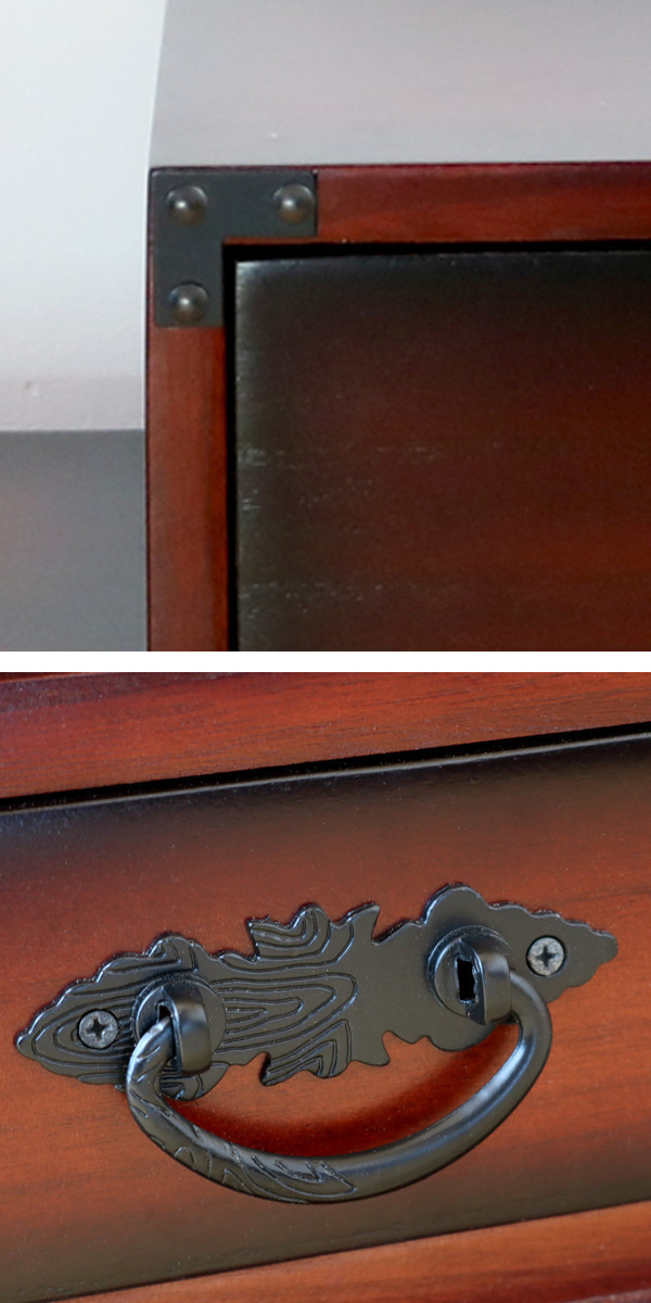 金具の取っ手や隅金具がついており、細部までこだわった本格的なデザインです。