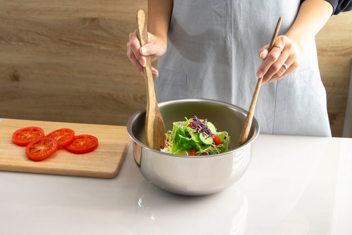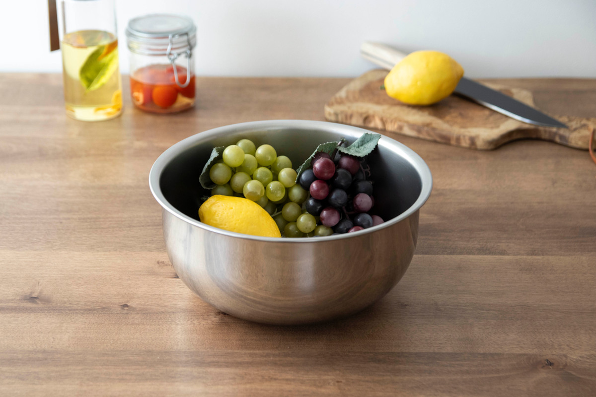 シンプルで使いやすいステンレス製サラダミックスボウルです。サラダを混ぜ合わせたり、生地やミンチをこねるのに使いやすいサイズです。