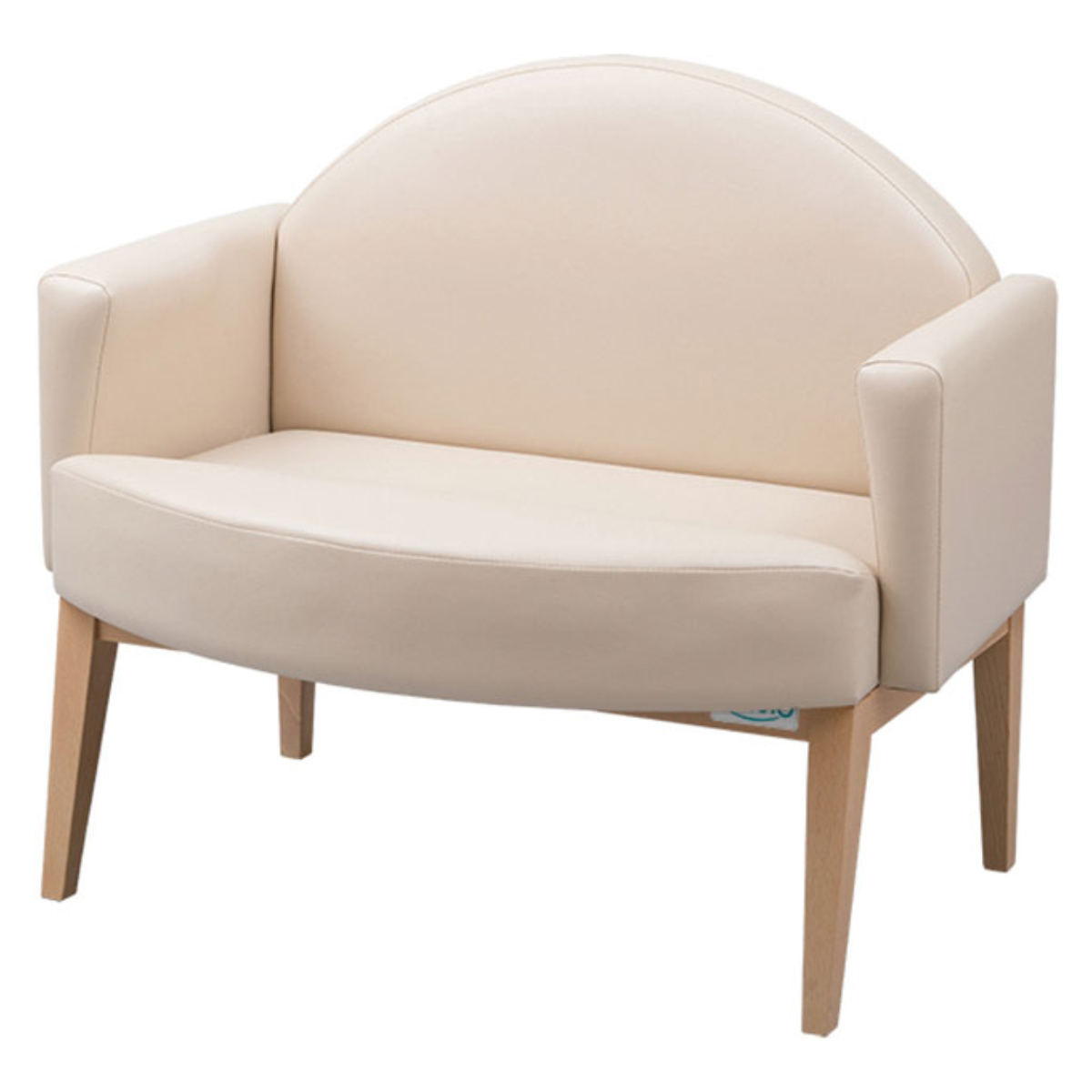 授乳スペースでの使用に特化したソファタイプの授乳専用チェアです。乳児の頭を支える腕をしっかり安定させるため、肘を乗せやすい形状や座面前部のふくらみなどを採用。専用設計ならではの工夫で、外出時の授乳負担をやさしくサポートします。