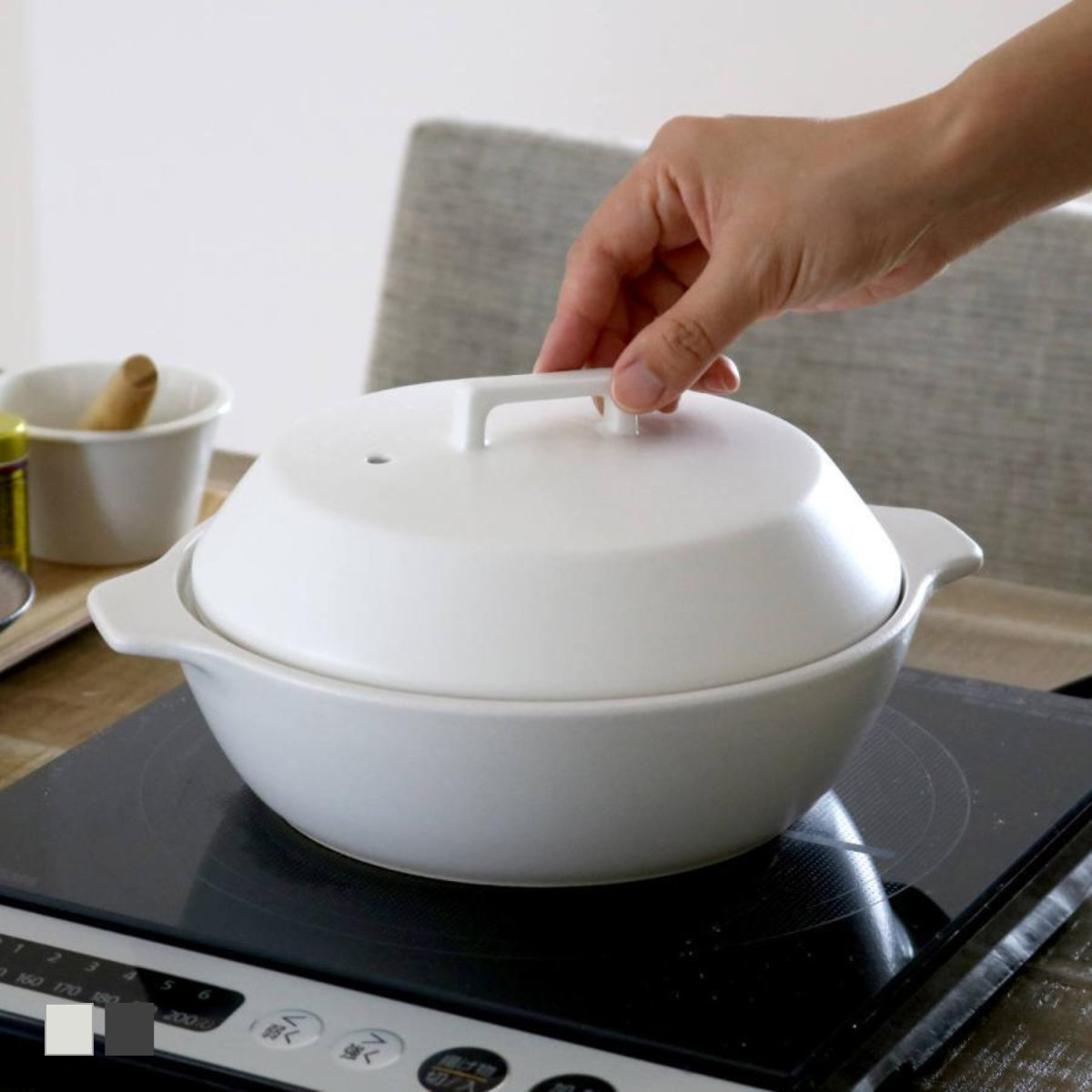 優れた機能を備えたモダンなデザインの土鍋●蒸す、炊く、煮るができる土鍋です。