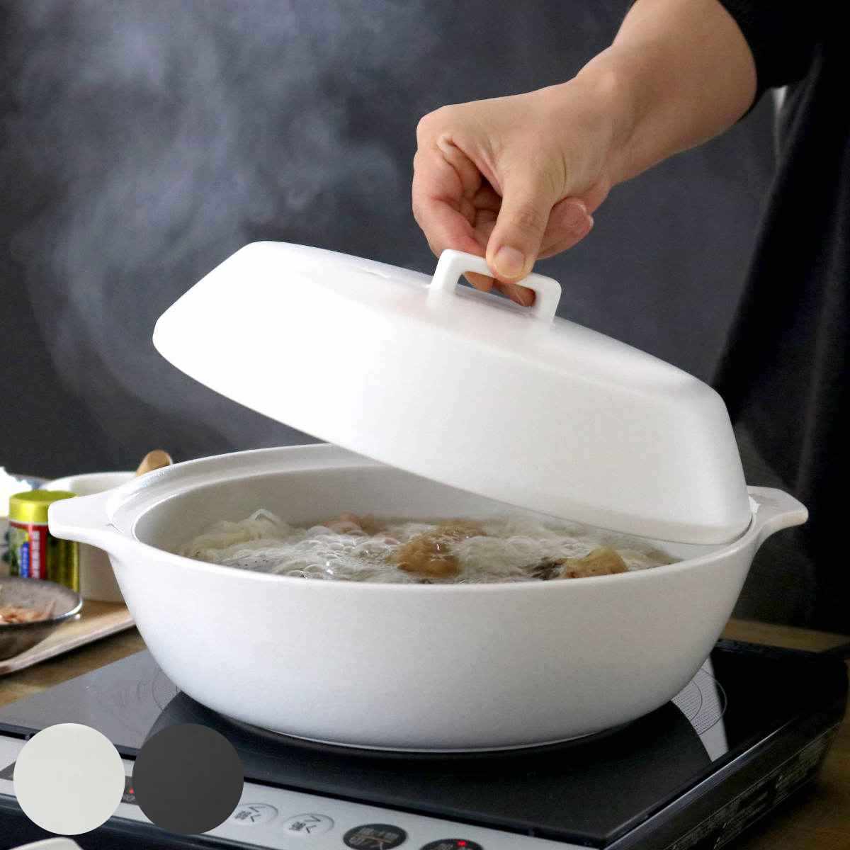 優れた機能を備えたモダンなデザインの土鍋●蒸す、炊く、煮るができる土鍋です。
