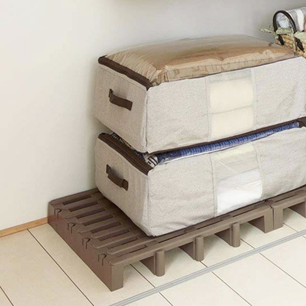 | 押入れ・クローゼットで 高床式で通気性がよく、下に除湿剤や脱臭剤を置くことができます。 | ベランダで 外のベランダやテラスなど、水はけの悪い場所に最適です。 |