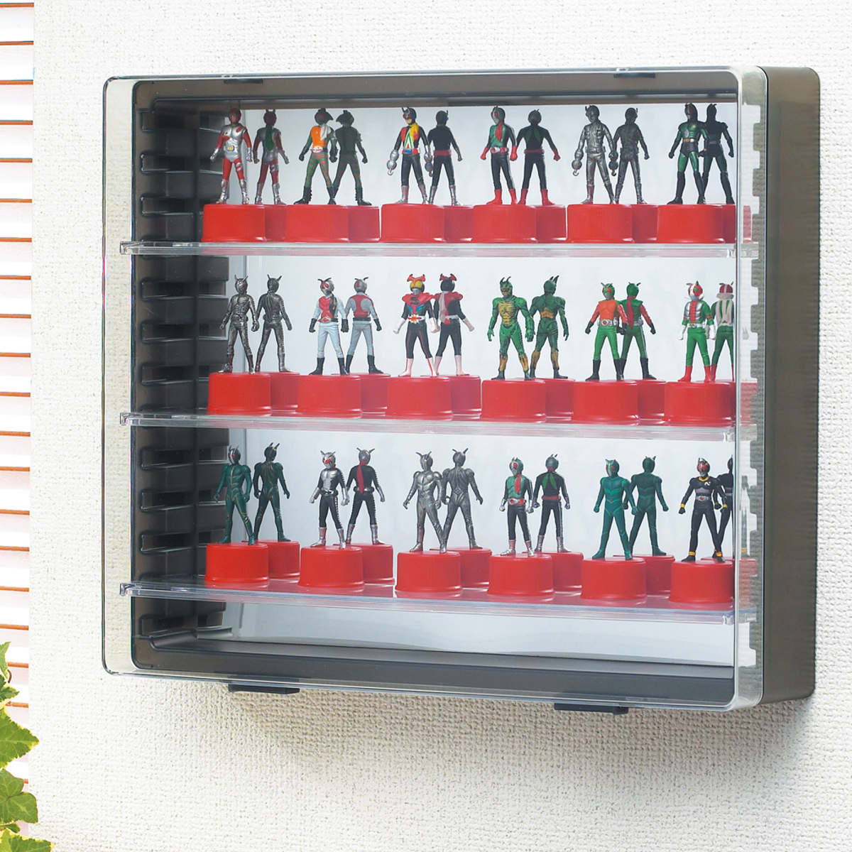大切なコレクションをホコリや破損から守る 壁掛け大切なフィギュア、お菓子のおまけ、ボトルキャップ、カプセル自販機商品、ミニカーなどをホコリや破損から守りながらディスプレイできます。