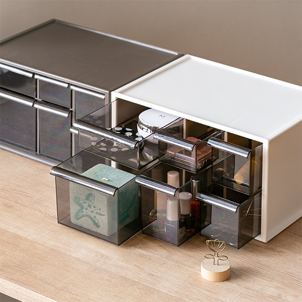 同サイズのアイケースは積み重ねが可能で、縦の空間を上手く活用できます。スペースの限られたデスク上であっても、積み重ねて使えば、収納容量を簡単に増やすことができます。