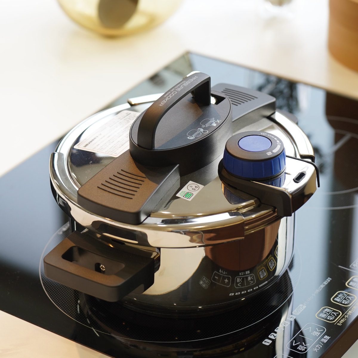 圧力が下がらないとフタが開かない安心設計です。お料理初心者でも安全に圧力調理が楽しめます。