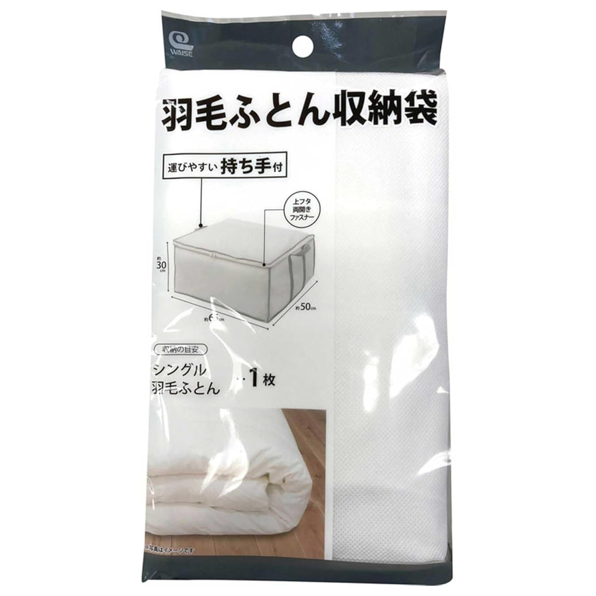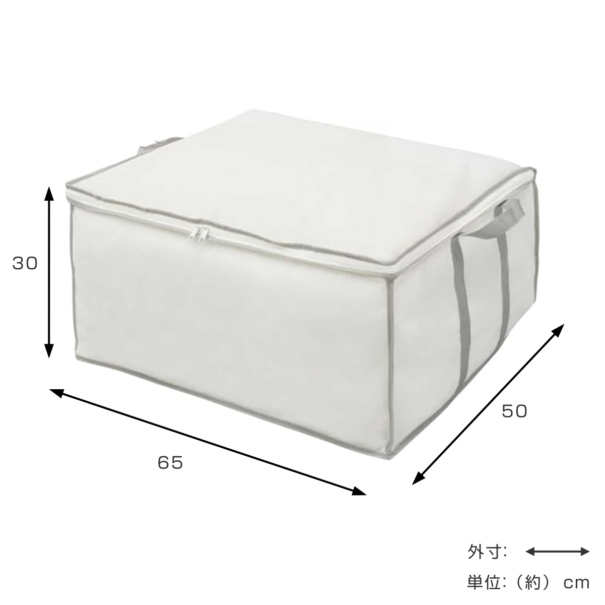 かさばる布団をスッキリ収納【羽毛布団用】押入れやクローゼットからの出し入れに便利な持ち手付きの収納袋です。通気性の良い不織布のやわらかい生地で収納物をやさしく守り、ホコリやゴミをしっかりガード。清潔に保ちながら大切に収納できます。