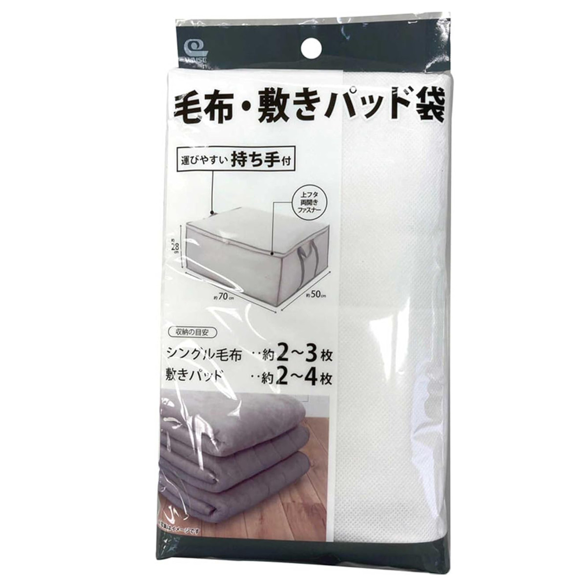 季節の寝具をまとめて収納【毛布・敷パッド用】押入れやクローゼットからの出し入れに便利な持ち手付きの収納袋です。通気性の良い不織布のやわらかい生地で収納物をやさしく守り、ホコリやゴミをしっかりガード。清潔に保ちながら大切に収納できます。
