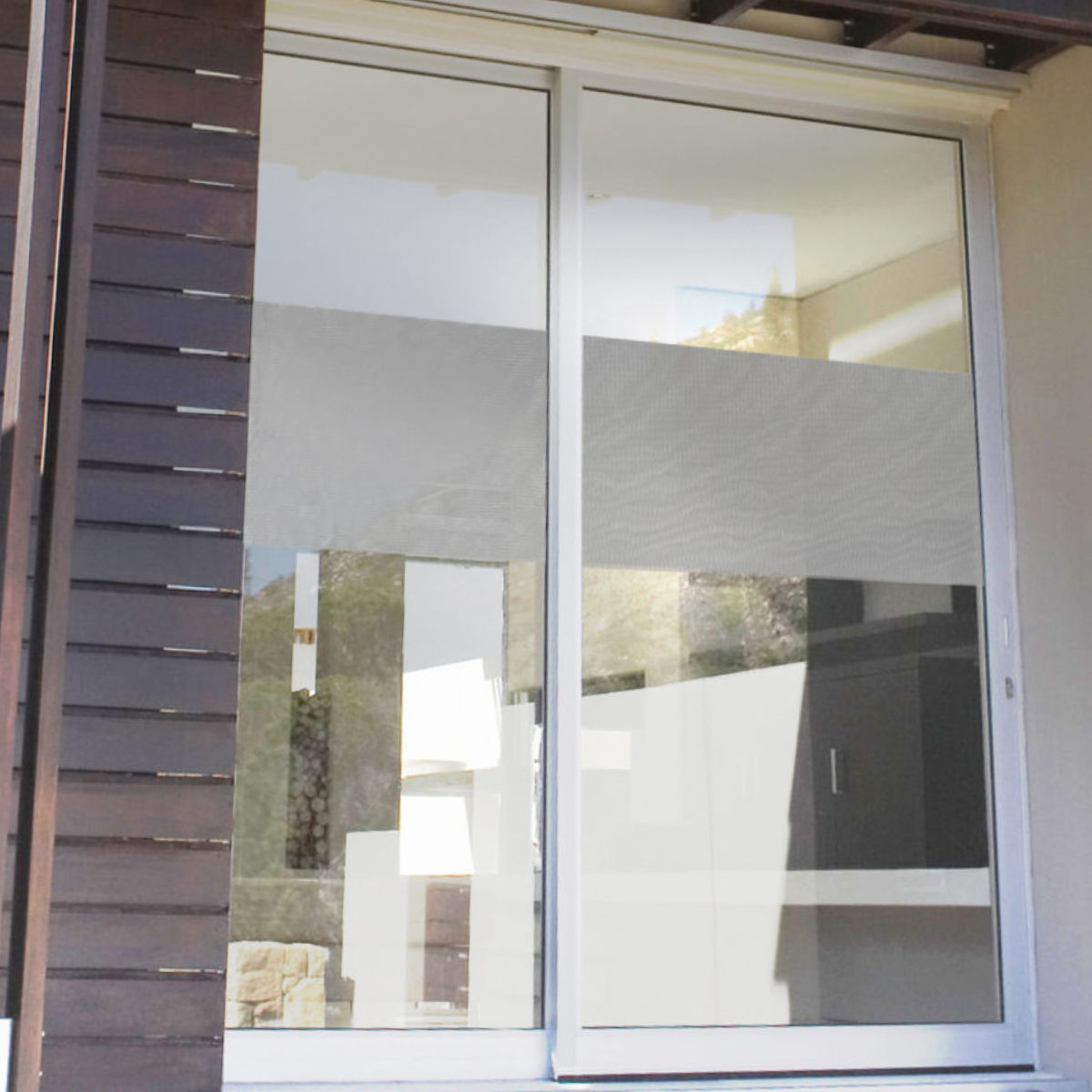 ●部屋の中から外の景色はスッキリと見えるのに、外からは部屋の中が見えにくい仕様です。※夜間は室内が明るい場合、目隠し効果はありません。