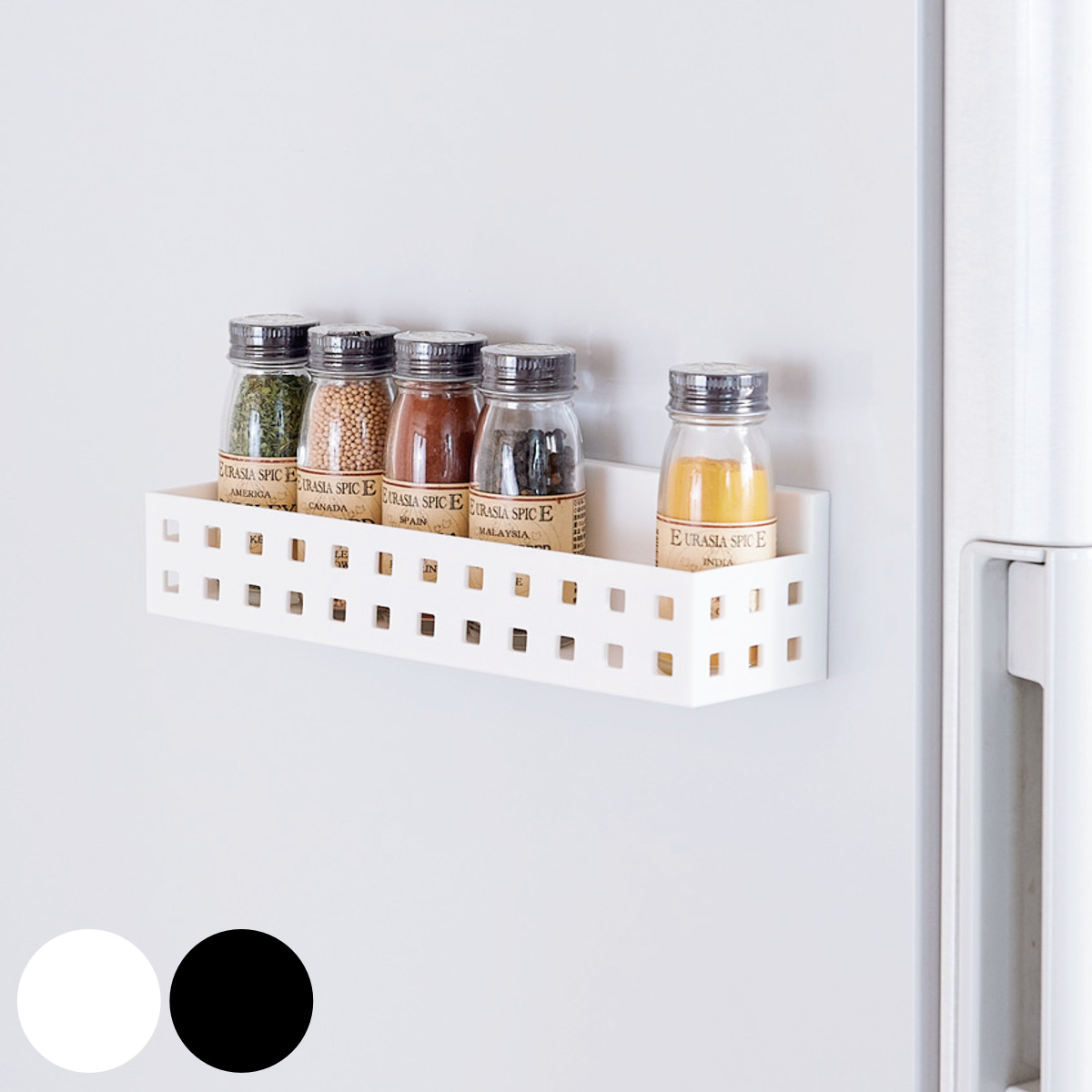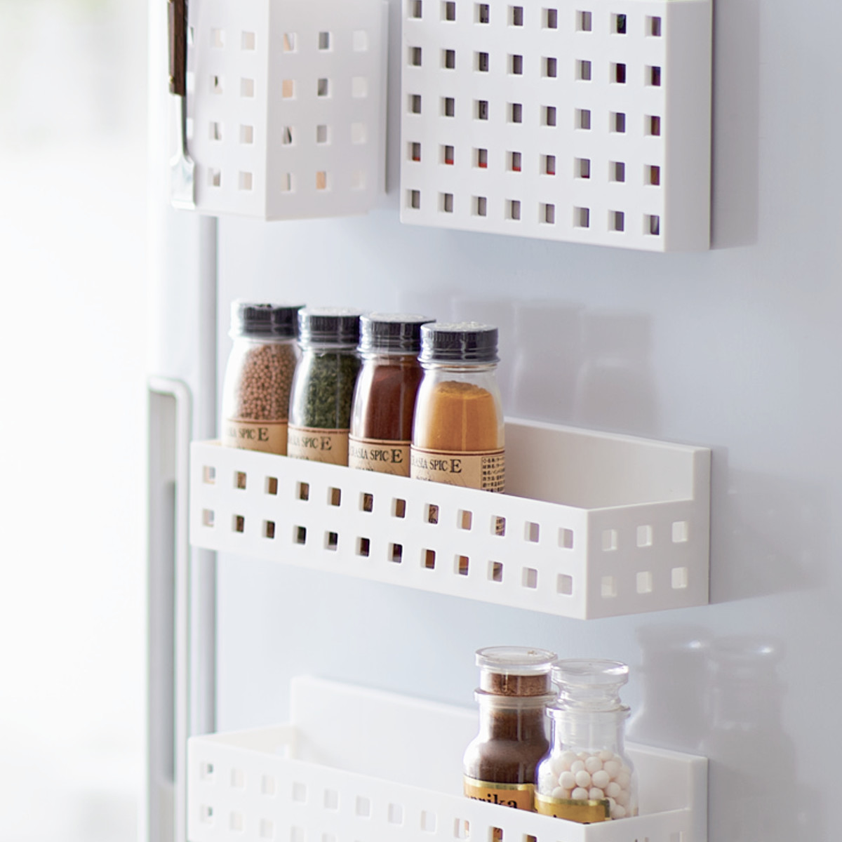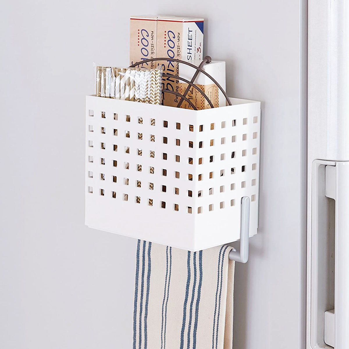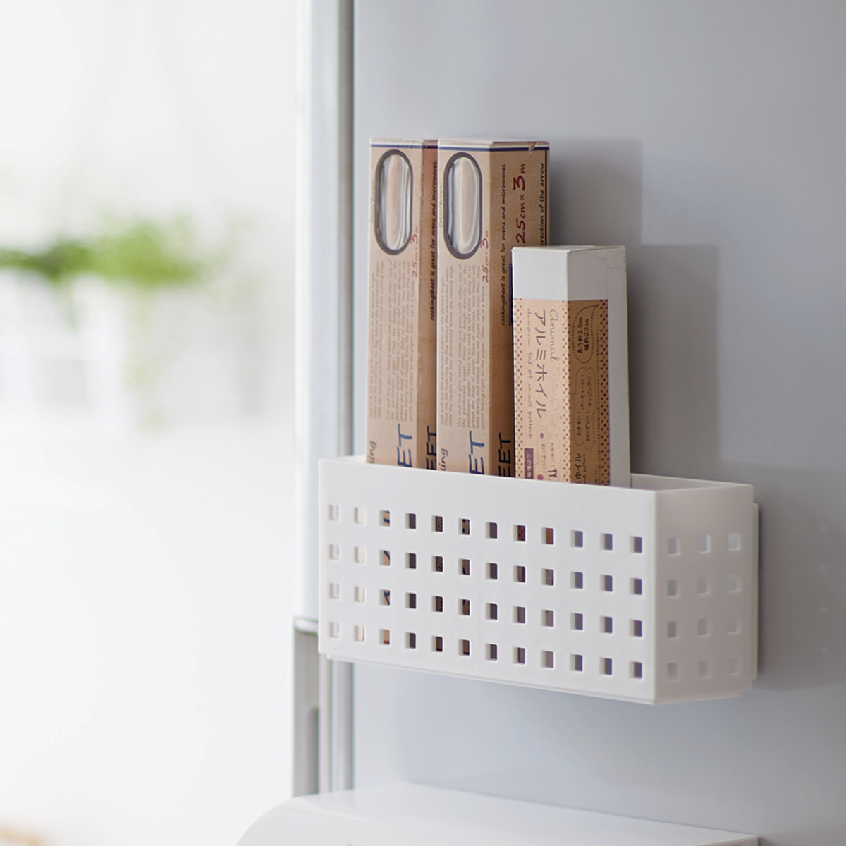 ●冷蔵庫サイドに取り付けて、キッチンの消耗品を使いやすい位置にまとめて収納できます。