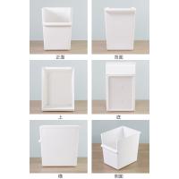 ボックス表側は出し入れしやすい隙間があり、裏側は中身が見えない形状です。普段は片付けやすい表側を前に、来客時は裏側にして隠す収納に。