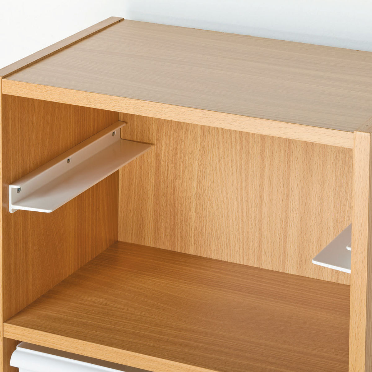 ![]() カラーボックスの1段を2分割できる コンテナレール | ![]() レールと合わせて引き出せる ワイドフタ | ![]() レールと合わせて引き出しになる ワイド浅型 |
