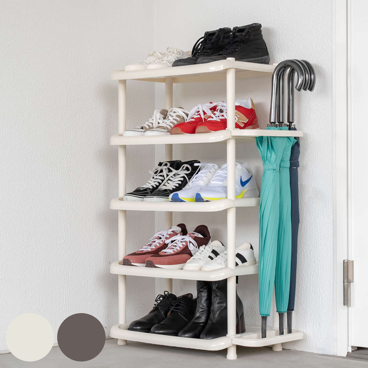 シューズラック ワイド 5段 シューズストレージ 傘立て付き 組立品 ( シューズスタンド 靴収納 下駄箱 靴 収納 ラック 傘立て スリム 簡単 組み立て 幅広 )