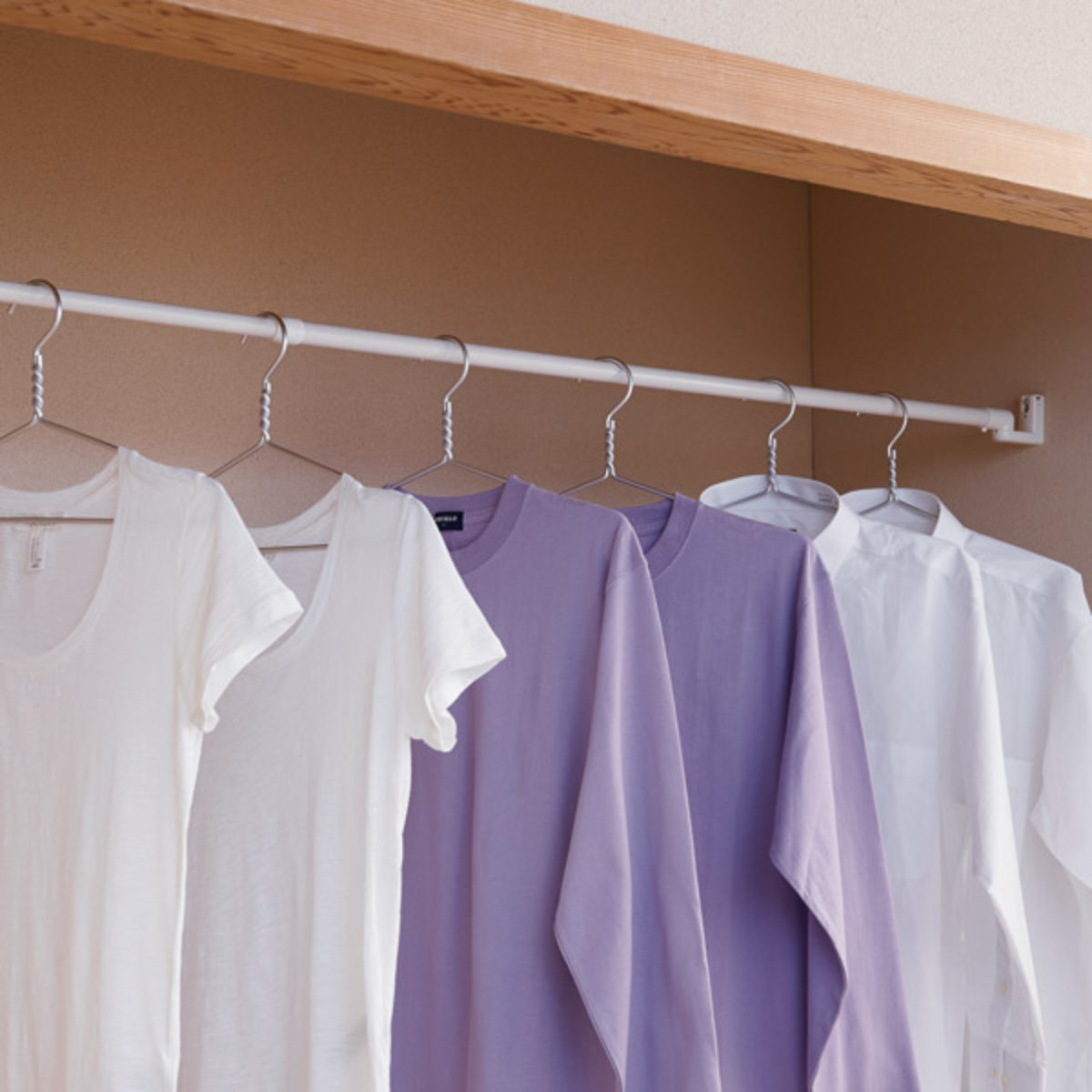 どんな角度にも対応できるうえに、部屋の隅から隅まで突っ張れるサイズなので、大量の洗濯物を室内干ししたいときにも便利にお使いいただけます。