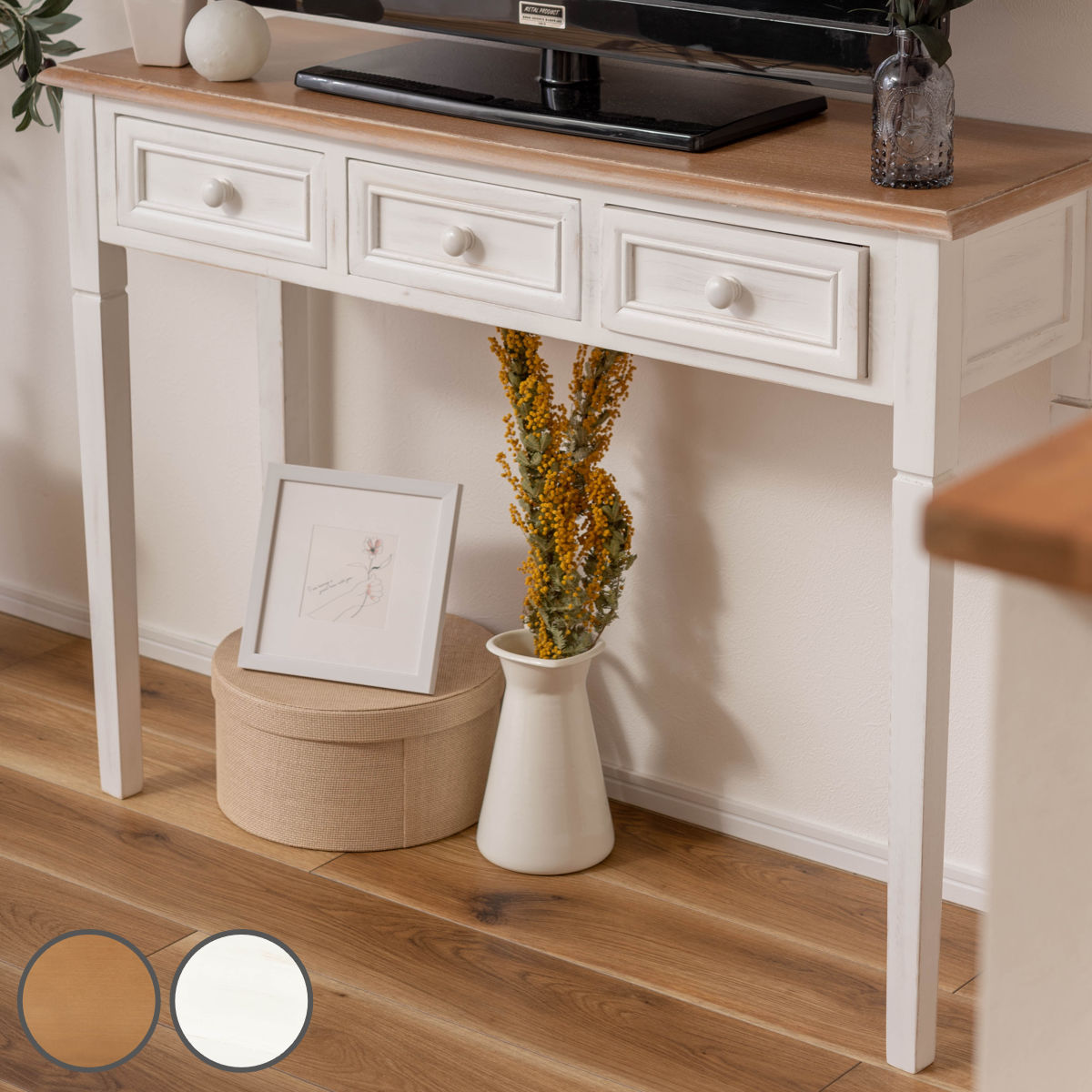 玄関 リビング ヴィンテージ調 ナチュラル カントリー調 木製 テレビ台 玄関周り エントランス 寝室 メイク台 ドレッサー 小物整理 シンプル シャービー フレンチ ヨーロピアン ヨーロッパ 可愛い かわいい 在宅ワーク 簡易机 ベッドルーム 約 幅100 奥行 33 高さ 74 cm センチ デスク パソコン ディスプレイ棚 Aube オーブ COD 桐 LH9195