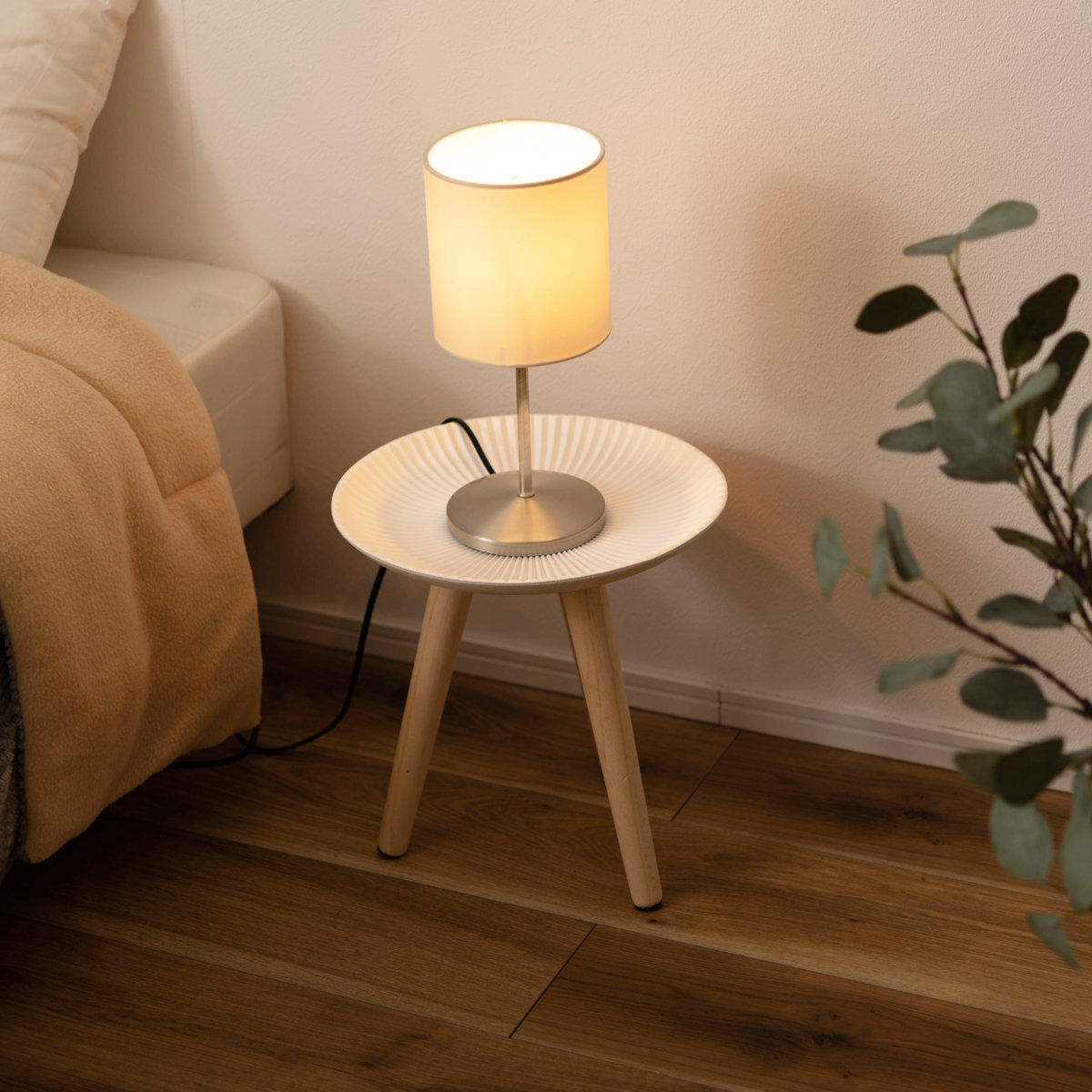 ベッドサイドに置けば、照明やスマートフォン、本などを置けて便利です。落ち着いたデザインで、寝室にもやさしく馴染みます。