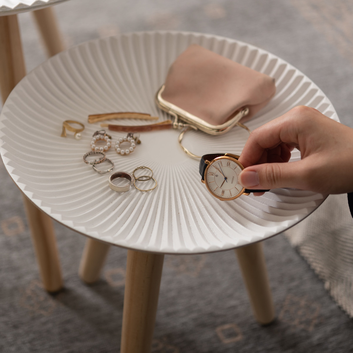 天然木 コーヒーテーブル カフェテーブル ベッドテーブル ホワイト 白 リビング 寝室 玄関 トレー 花台 植物 シンプル 家具 約 直径30 cm センチ ひとり暮らし 1人暮らし インテリア おしゃれ お洒落 オシャレ かわいい 可愛い カワイイ ソファテーブル ソファーテーブル ソファ横 ベッド横