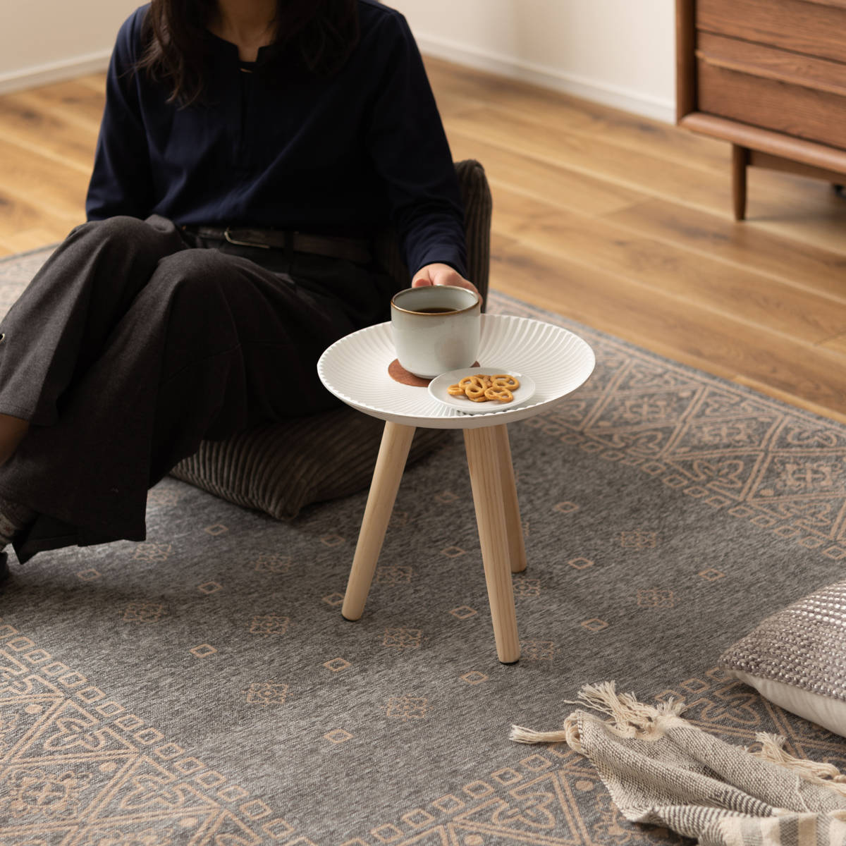 座椅子やソファの横に置けば、くつろぎ時間を快適にサポート。スマホやドリンク、本などを手の届く位置に置けるので、日常使いに便利なサイドテーブルです。