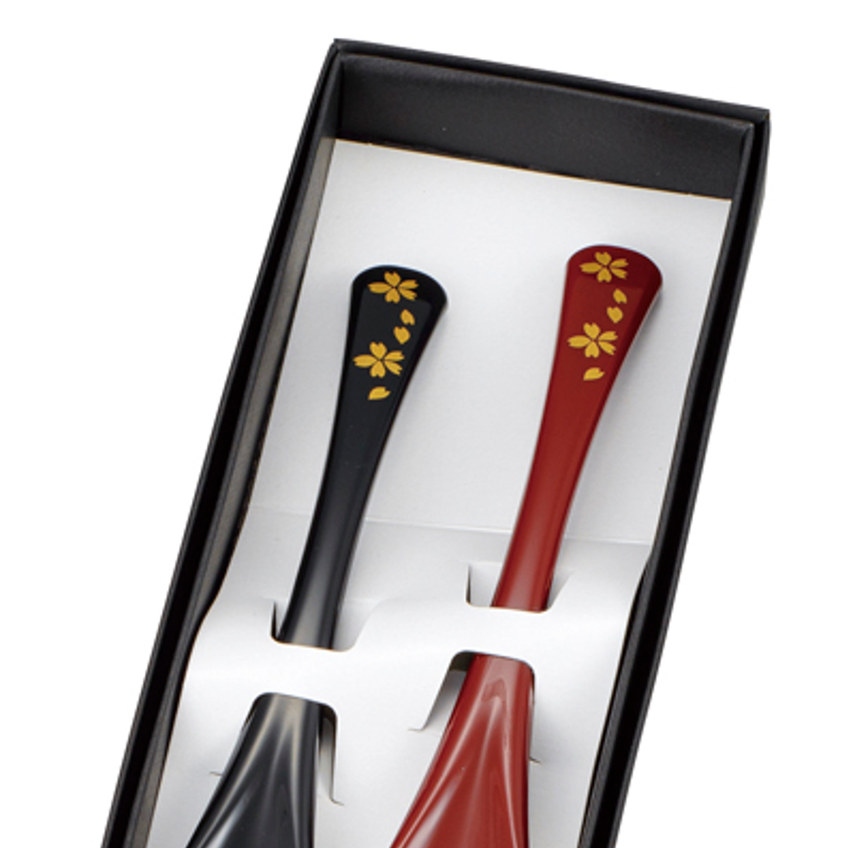 スプーンペア 桜 黒・赤 ( 19.5cm スプーン 2本入り カトラリー ギフトセット 和食器 和食 日本製 )