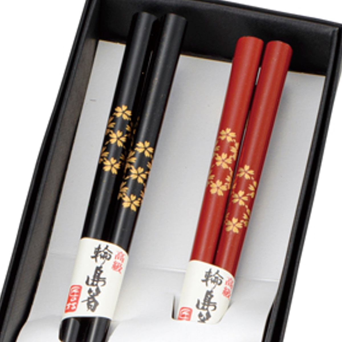 金色の桜模様をあしらった夫婦箸 22.5cm軽くて手になじむ木製の箸は口当たり、手触りともにやさしく、毎日の食卓はもちろん、来客時やおもてなしの場にも活躍します。黒と赤の組み合わせは、さりげなくお揃い感があり、ご夫婦やご家族用としてもおすすめです。