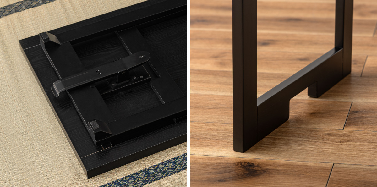 床を傷つけにくい仕様の脚部ローテーブル使用時にも床や畳への接地面を広めにとることで、傷つきを軽減できる設計になっています。また、脚裏にはフェルト付きで、フローリングの上での使用も安心です。