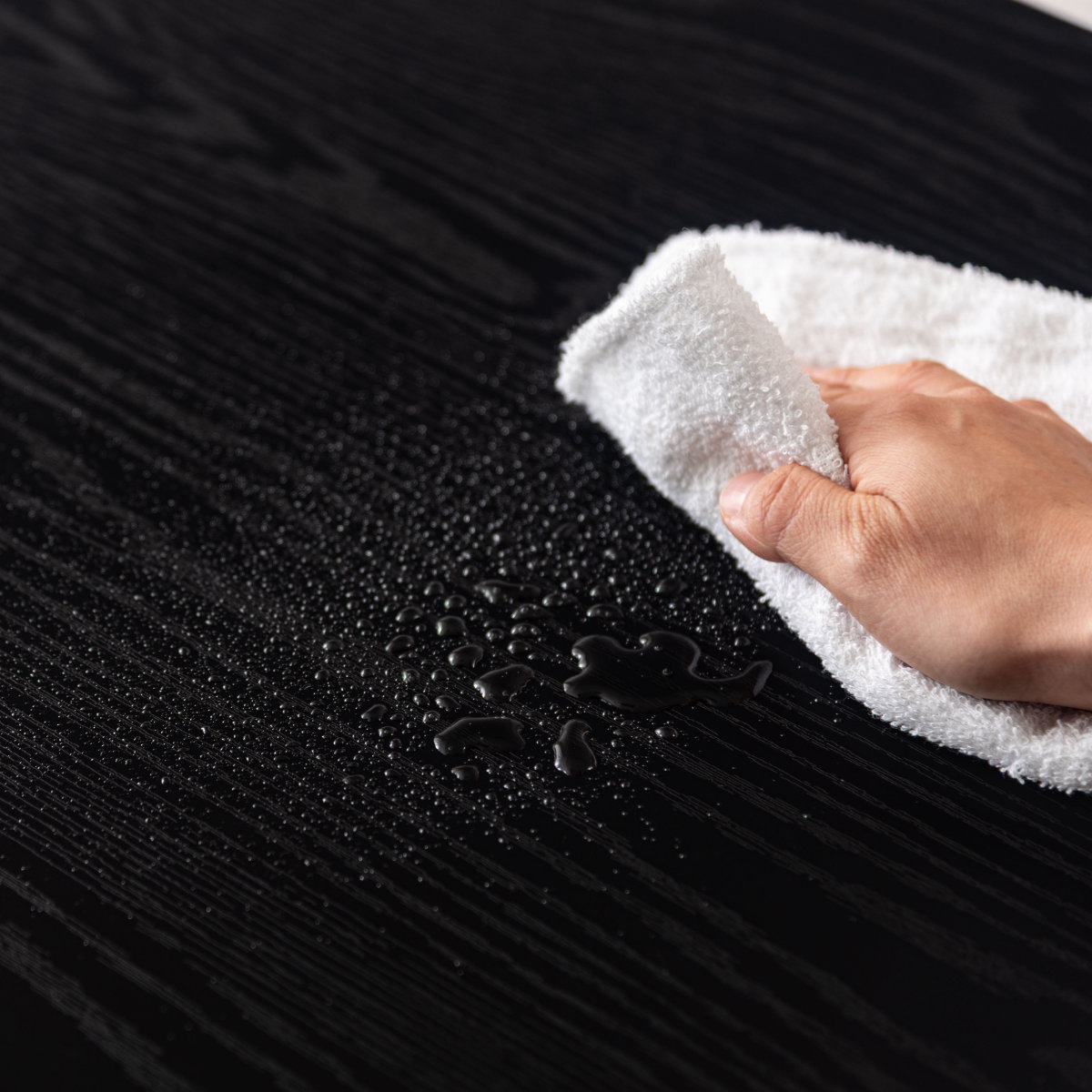 サッとひと拭きお手入れ簡単表面には、木目調シートが貼られたメラミン化粧繊維板を使用しています。汚れても拭き取りやすく、いつでも清潔にお使いいただけます。