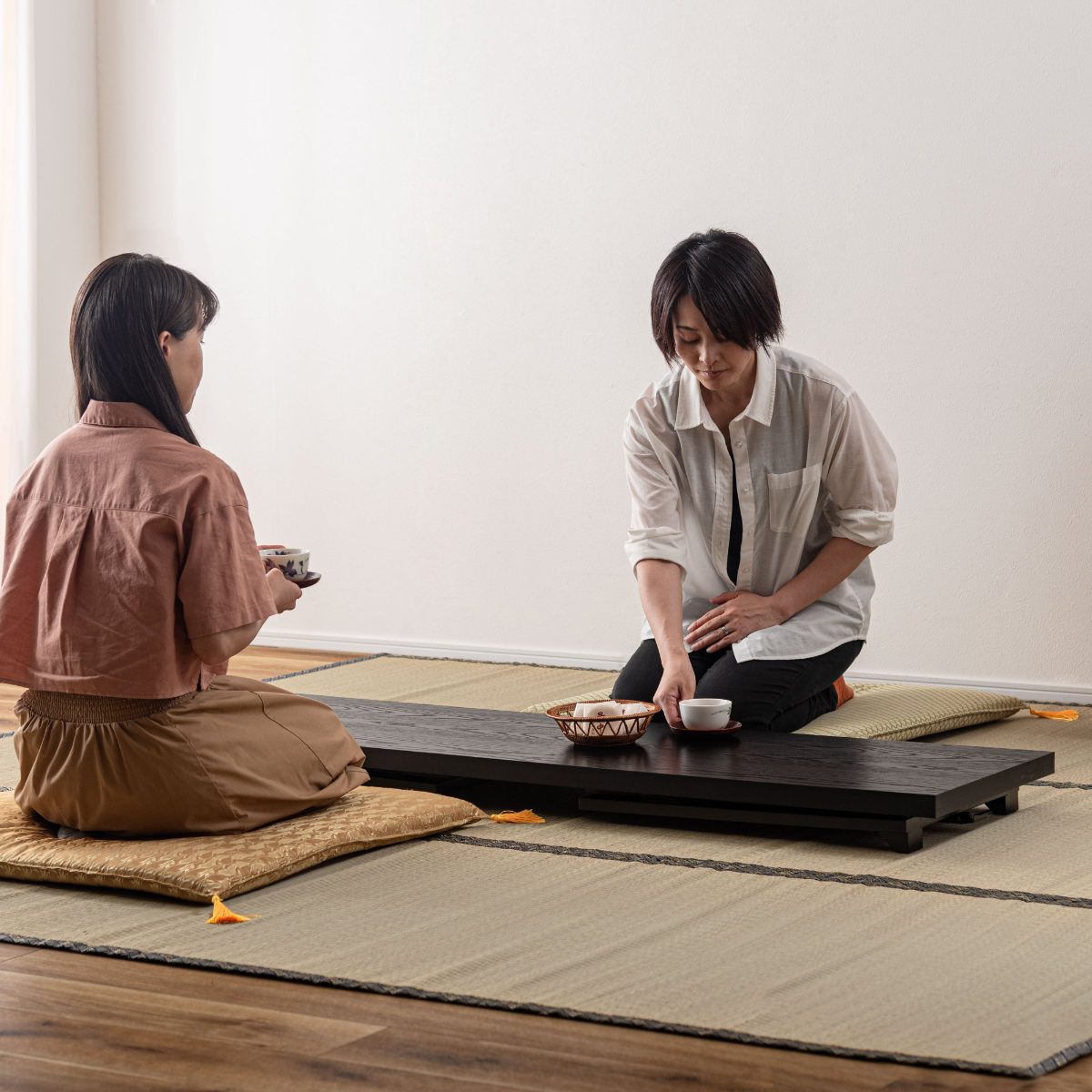和室に映えるシンプルモダンなデザイン●落ち着いた木目調が和室に合う、上品なデザインの法事テーブルです。