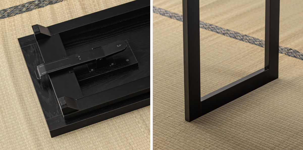 床を傷つけにくい仕様の脚部ローテーブル使用時にも床や畳への接地面を広めにとることで、傷つきを軽減できる設計になっています。また、脚裏にはフェルト付きで、フローリングの上での使用も安心です。