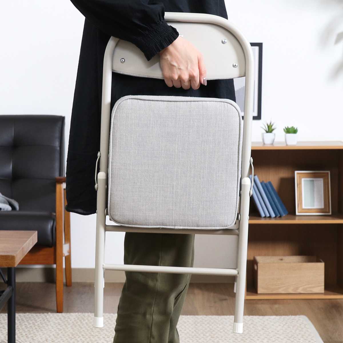 | サイズ | 約 幅34×奥行34×高さ53.5(cm) 座面高:約 30(cm) 座面サイズ:約 幅28×奥行28×厚さ5cm 折りたたみ時:約 幅34×奥行7×高さ69.5cm |