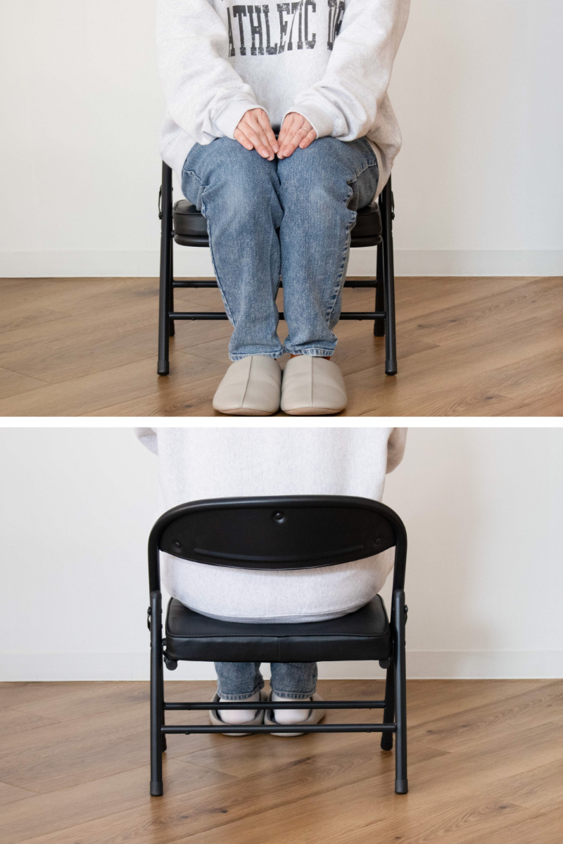 | サイズ | 約 幅43×奥行37×高さ51.5(cm) 座面高:約 30(cm) 座面サイズ:約 幅37×奥行28.5×厚さ5cm 折りたたみ時:約 幅43×奥行7×高さ67cm |